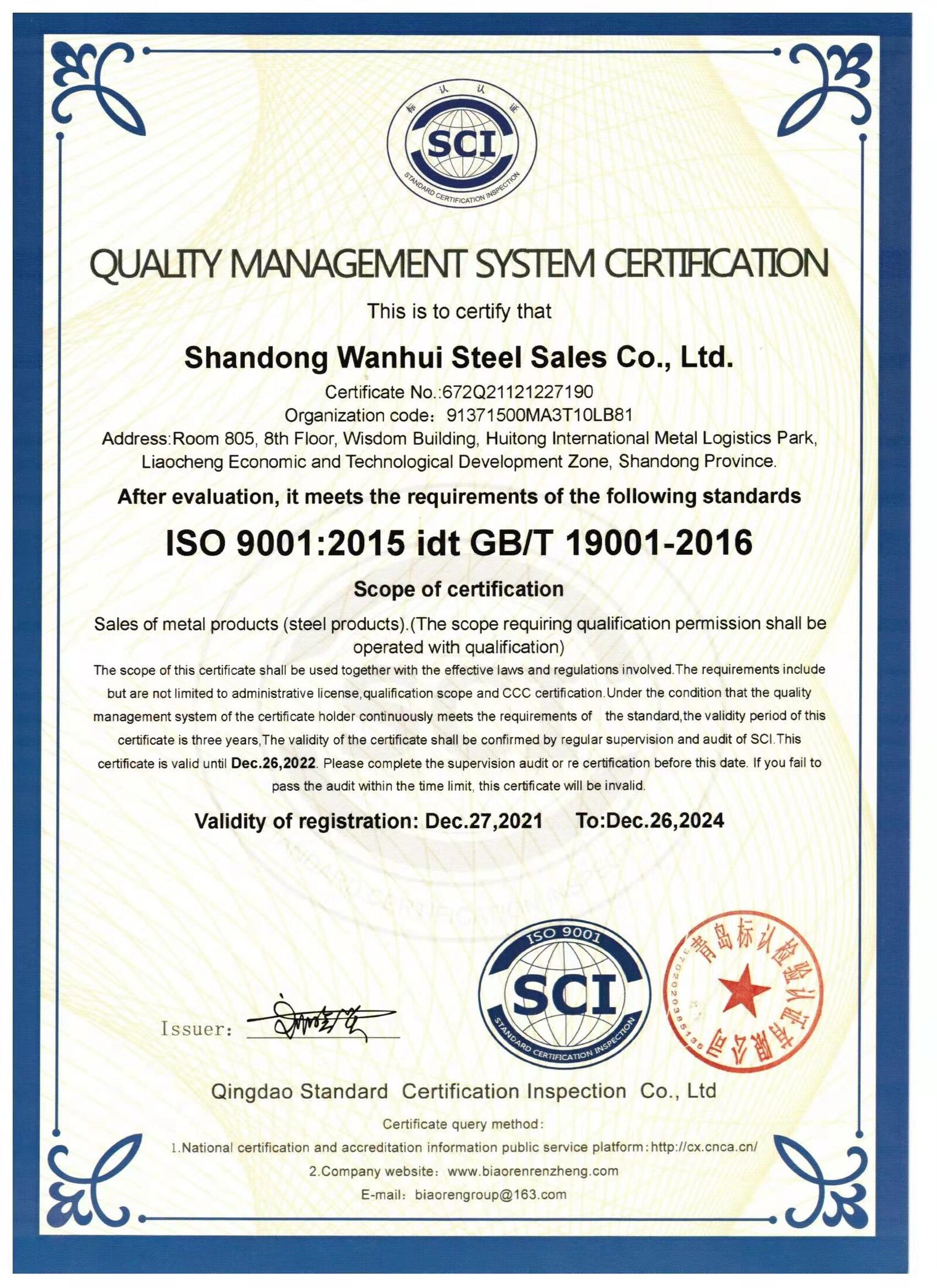 Shandong Wanhui Metal Products Co., Ltd is an enterprise specializing in steel production and sales. The company's main products are carbon steel, stainless steel, profile steel, galvanized steel, color-coated plates, etc. We dedicate to strict quality control and thoughtful customer service. We have established a long-term and stable cooperative relationship with customers at home and abroad. The company has sufficient inventory, support customization and complete varieties and specifications.